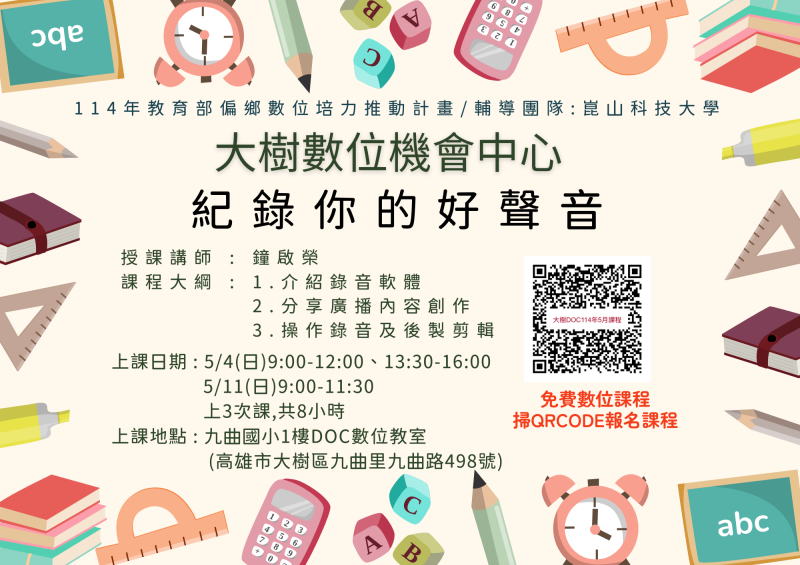 花蓮市DOC於5月17日假花蓮市立圖書館洄瀾文創生活藝能教室,舉辦【Podcast說故事】...