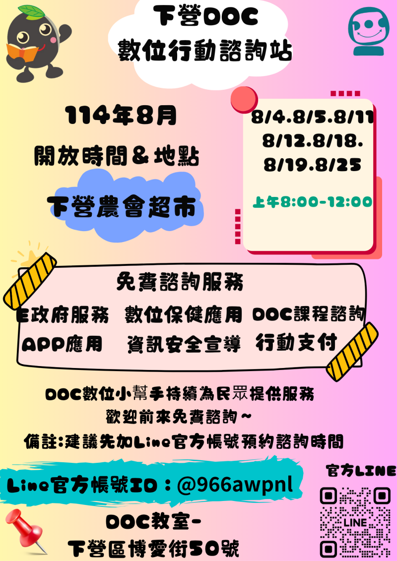 雲林縣虎尾鎮公所為提升高齡長者數位應用能力,一一四(今)年九月二十三日起至十月三十一日與國立虎尾科技大學彰雲嘉數位機會中心輔導團隊合作至虎尾鎮十五處社區關懷據點及長青食堂等場域設置行動櫃檯,針對長輩常見的數位需求,現場提供操作指導,包括手機