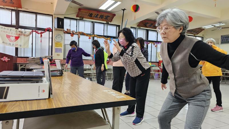 講師前往石潭村長照據點開設「數位健康養成」課程,透過介紹互動式運動 APP,鼓勵長者們離開椅子,起身活動。