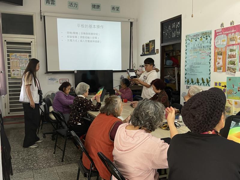 課程最後,老師教大家如何連上免費的公共網路如「iTaiwan」與「i-Tribe」,並介紹如何利用平板查地圖、看YouTube聽老歌、觀賞紀錄片等,讓數位工具真正走入長輩們的日常生活。此外,還不忘宣導網路安全與防詐知識,守護大家快樂上網的同時,也提升自我保護的能力。看著學員們一邊點著平板、一邊開心地跟身旁朋友分享學到的新技能,那份驕傲與快樂寫在每一張笑臉