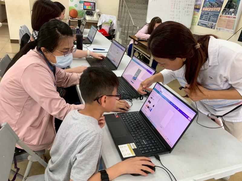 Canva 提供了琳瑯滿目的行銷入門模板,老師讓每個人設計用(直式)傳單套用模板設計母親節賀卡,每個人的作品都不一樣,速度快的學生設計每月一張賀卡。老師指導小朋友Canva設計圖片。