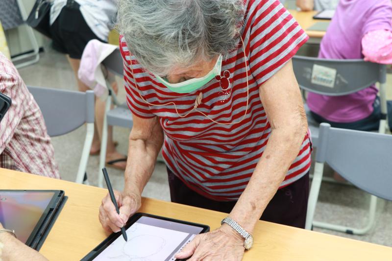從點選筆刷到上色、放大縮小,長輩們一步步學得認真又投入👏