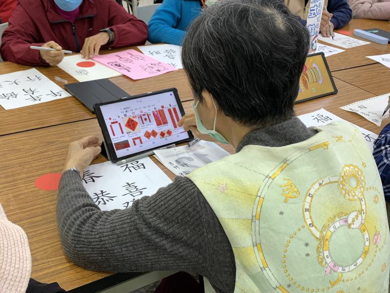 開課訊息 數位應用活動 資訊課程成果 生態系課程成果 學習故事 在地講師 特色課程 數位共享教材 ::: <上一則 返回列表 下一則> 新年到創意春聯設計班 發布日期:111/02/08 開課單位:左鎮DOC 上課地點:臺南市玉井區望明里望明76號 [上課照片]利用平板查詢圖片,激發創作靈感....認真可愛的學員,用心做著筆記的樣子,凸顯了"活到老、學到老"的真義.....一起秀出我們的創意春聯及自己設計手繪的胸章圖案 <上一則 返回列表 下一則>