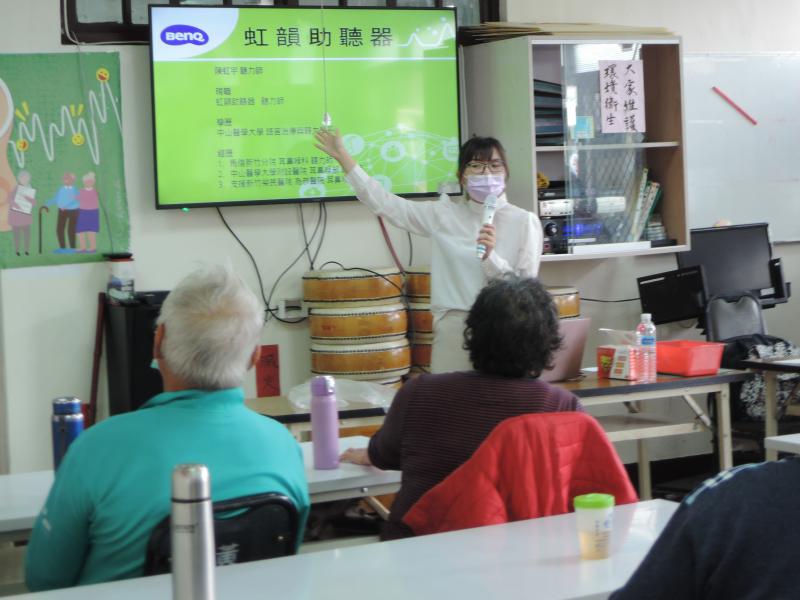 豐田社區的教室坐得滿滿的,期待聽力師的到來。除了駐點雅琦外,還有積極參與課程的桂美也來了,今天要麻煩他協助,等等的聽力檢測。