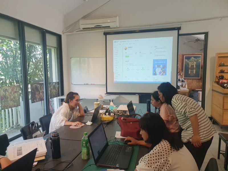 學員進入管理頁面後,講師逐步引導如何製作題目及關鍵字句。學員以筆電專注的設計題目及進行操作。