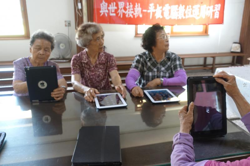 講師講解平板的操作方法,先讓長輩們初步認識平板