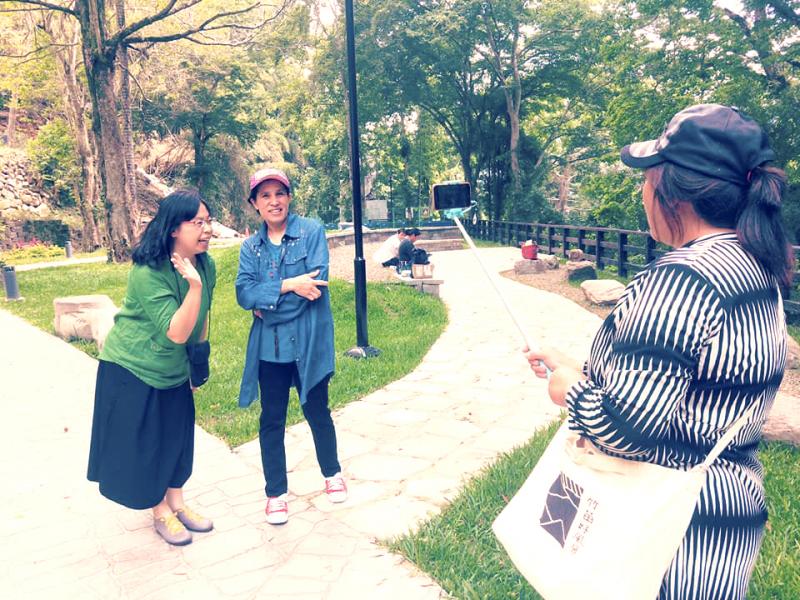 ▼圖一:學員體驗Facebook線上直播,即時分享在地部落景點及獨特場域的感受。