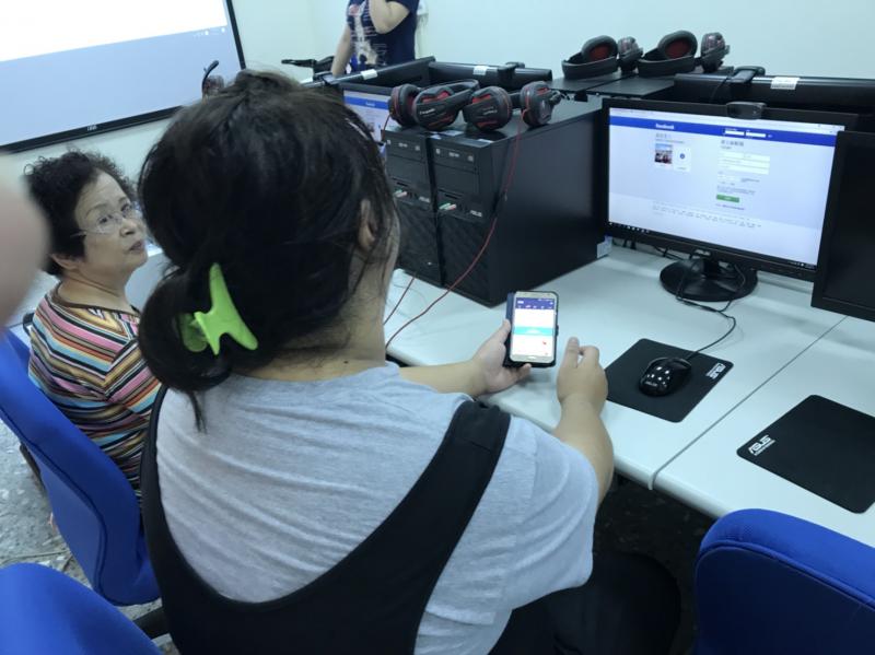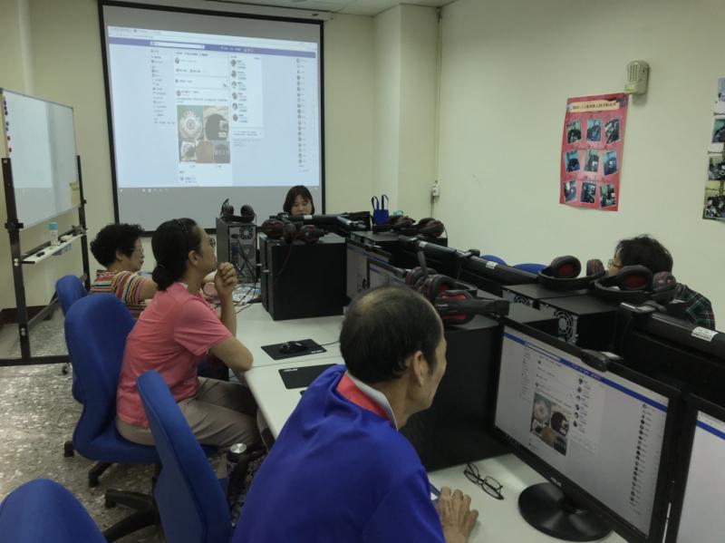 老師介紹臉書界面,學員認真上課情形。