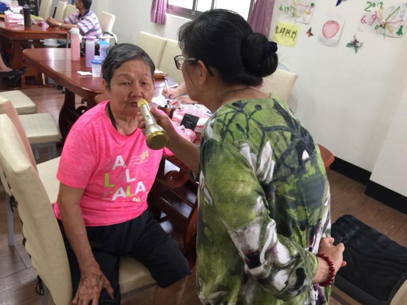拎著兩大箱的器材,一進關懷據點裡,熱情的鄉親迎上來,"老師、老師 今天有什麼好東西 猴阮看?"