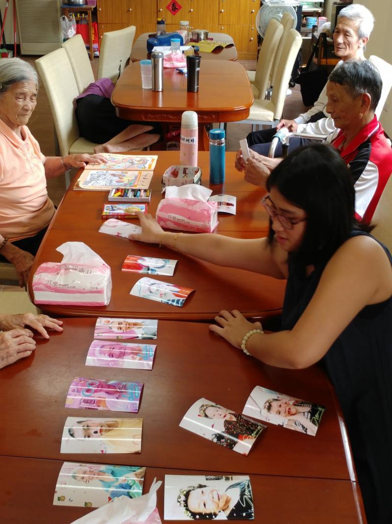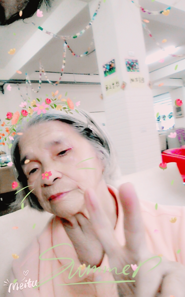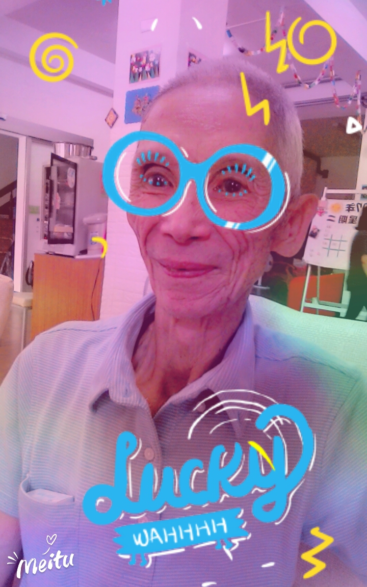 在福龜村的關懷據點裡大多是,行動不便的長輩們,由據點內的護工悉心照料著,因為大多並無自己專用手機,所以DOC提供平板讓長者們體驗,講師請護工們透過平板電腦一起學習照相,修圖,美圖秀秀,這位高齡92歲的阿嬤,一直稱讚說,技術好啊,我的皺紋都看不見了!