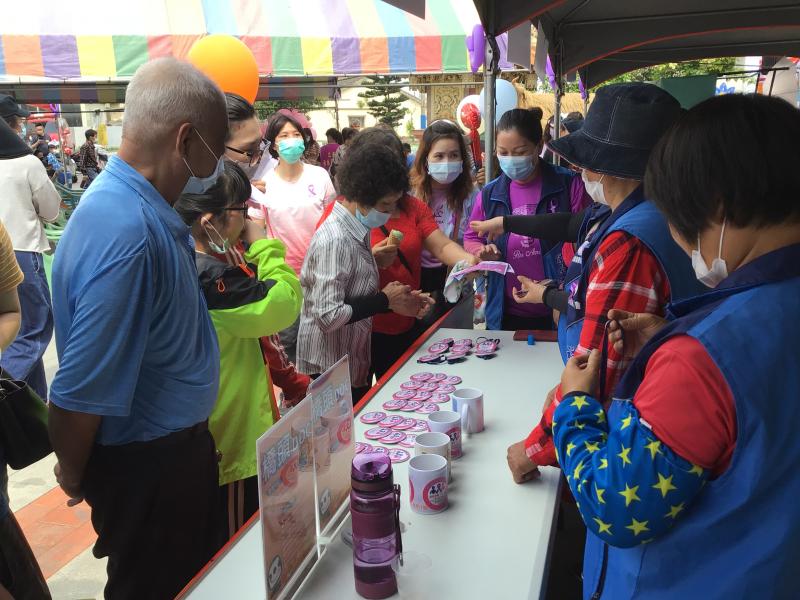 配合鄰近社區(三盛社區)辦理社區家庭防暴宣導活動,橋頭DOC協助施厝社區製作社區防暴宣導品胸章製作及馬克杯熱轉印等制作,由於限量免費領取產生民眾熱烈的參與,透過活動辦理當日DOC亦宣導社區DOC行動分班課程介紹,多個社區現場即希望橋頭DOC安排洽詢DOC到社區上課相關事宜,因此本次DOC參展活動收穫滿滿達DOC宣傳的目的