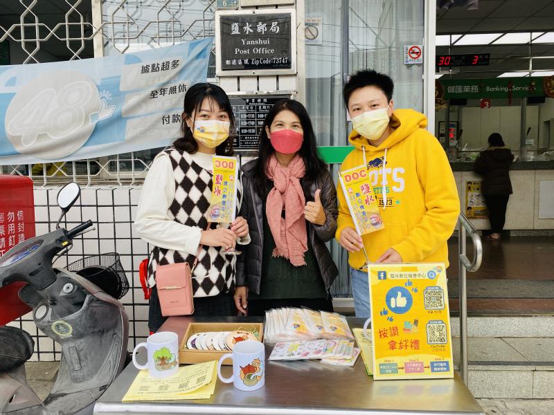 鹽水區一年一度大盛事活動就是鹽水衝蜂炮啦,鹽水DOC向鹽水郵局借場地,在人來人往的郵局門口,就擺起了DOC相關成果與招生簡章