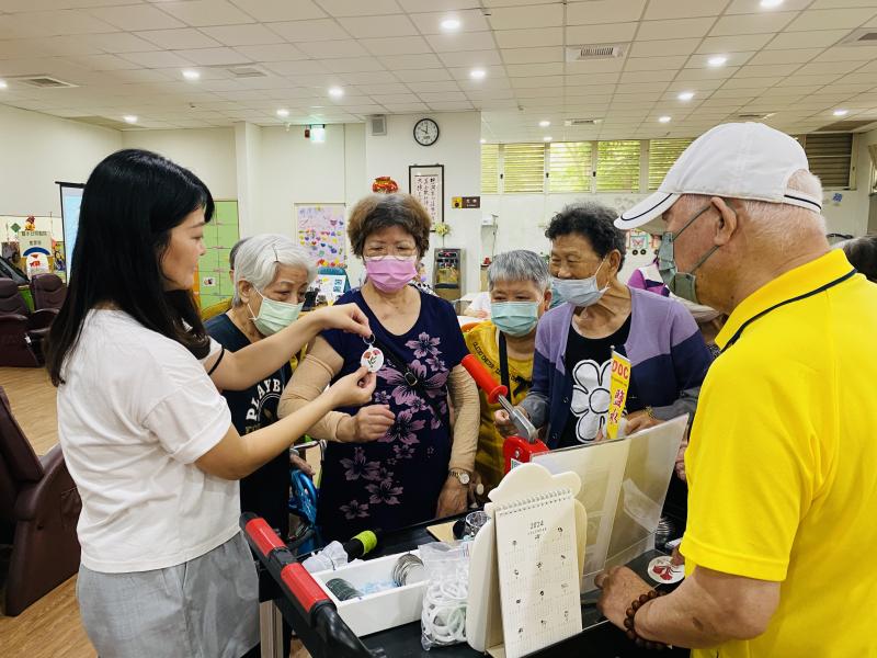 活動中也帶領中心的長輩們製作母親節鏡子鑰匙圈吊飾,當長輩們看到自己畫的圖由自己操作機器,最後變成鑰匙圈吊飾,臉上都露出很開心的笑容,祝福長輩們身體健康,永遠記得自己和家人!