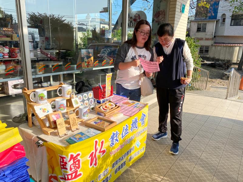 鹽水DOC也在1月23日下午到周邊的7-11擺設攤位並展示學員作品,現場也提供傳單介紹DOC及整年度的免費課程文宣,希望透過推廣活動,讓DOC在地方上有更多民眾能看見。