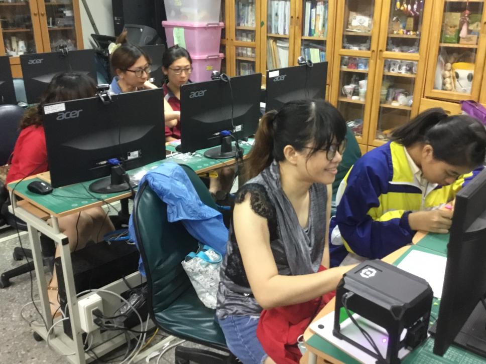 2-學員3人一組供童執行雷雕機使用操作