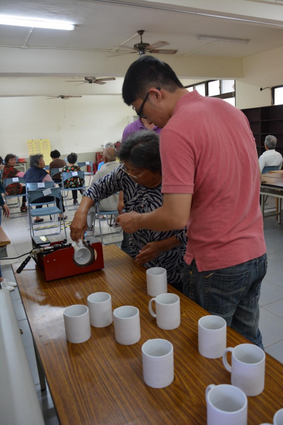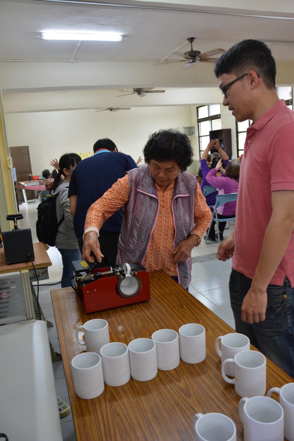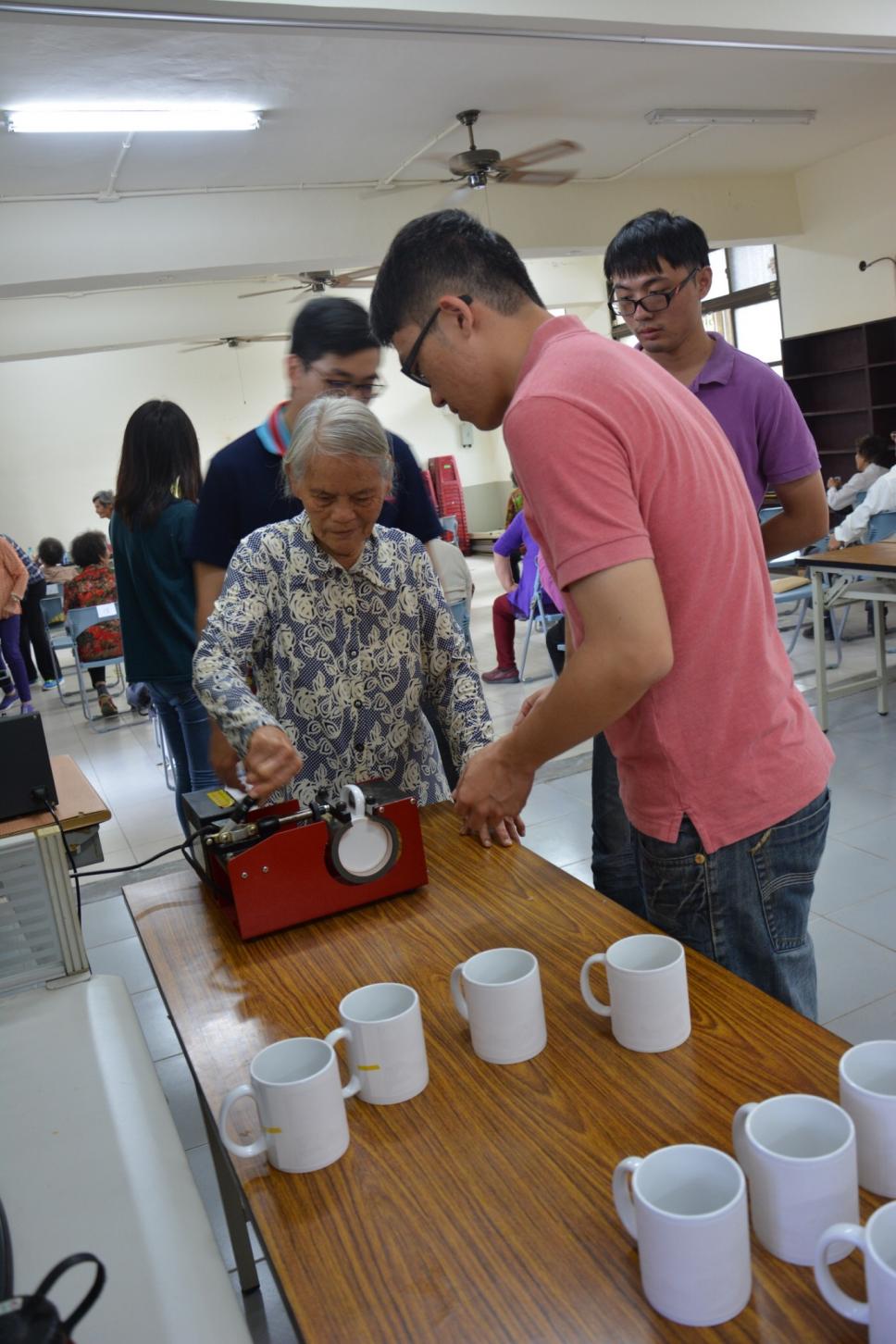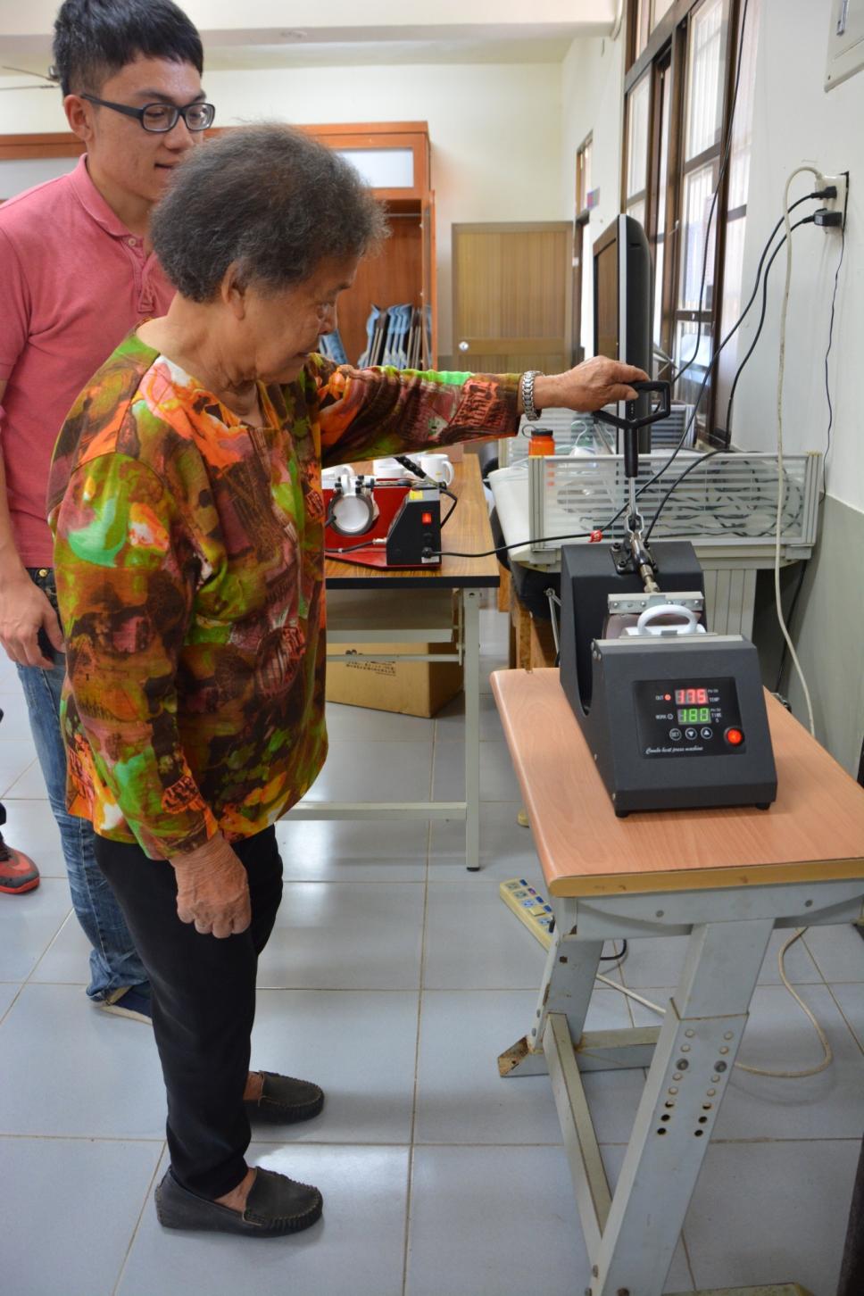 老師教導操作馬克杯機