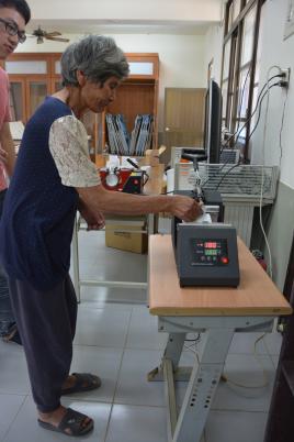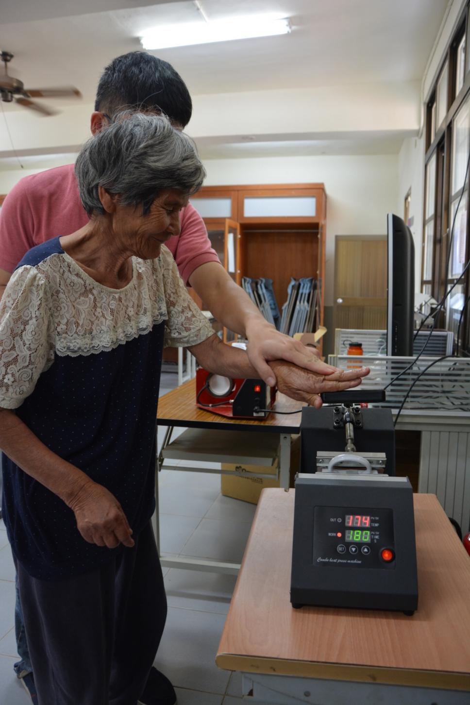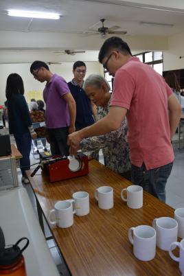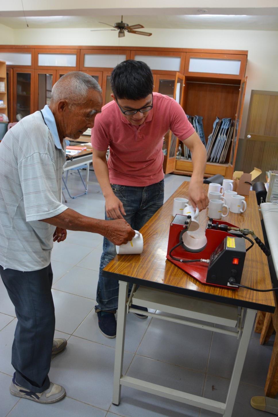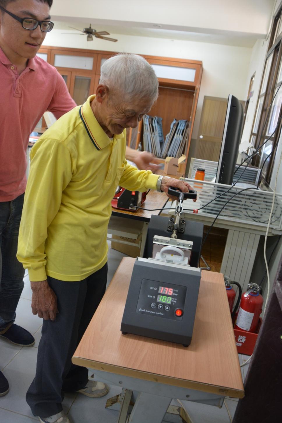 老師教導操作馬克杯機