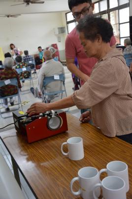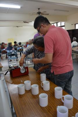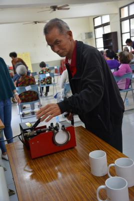阿公開心地可以做出一個屬於自己的杯子