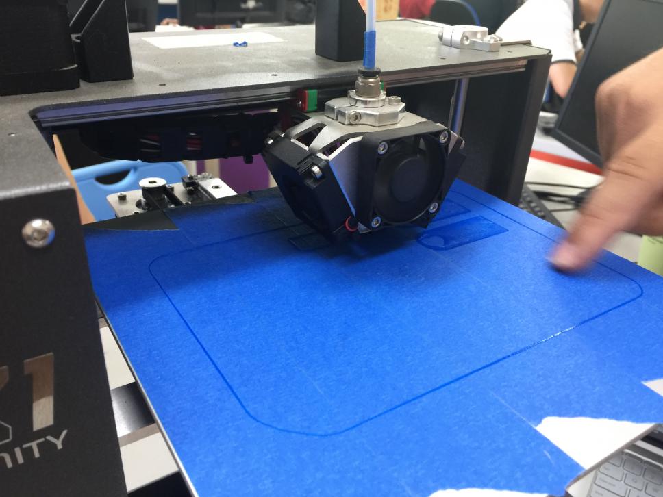 大家圍過來看著列印機列印情形