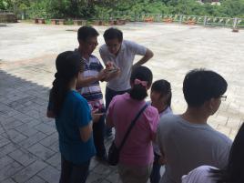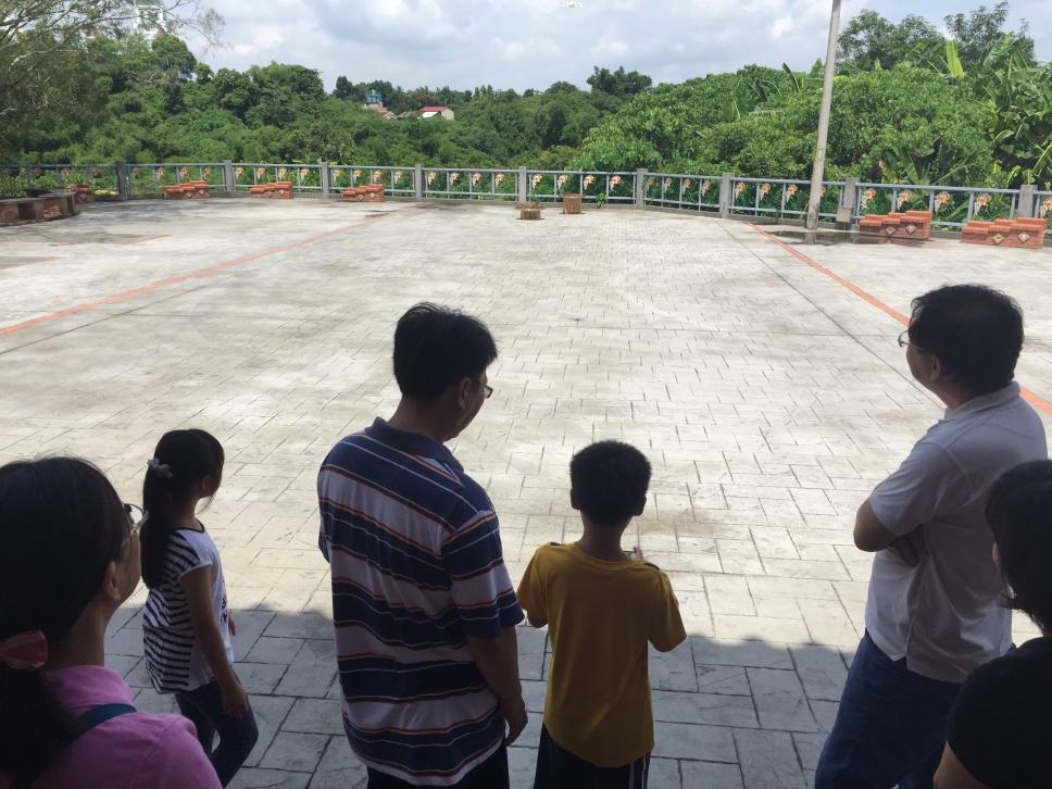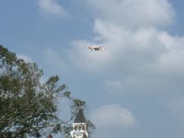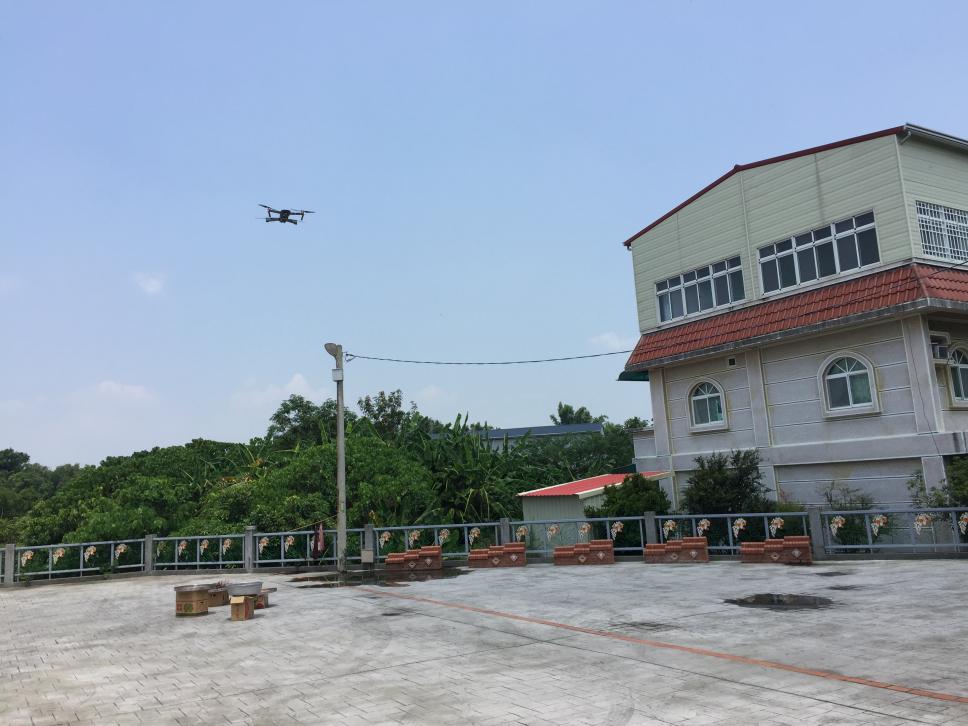 大家望著前方的空拍機飛行既期待又怕受傷害