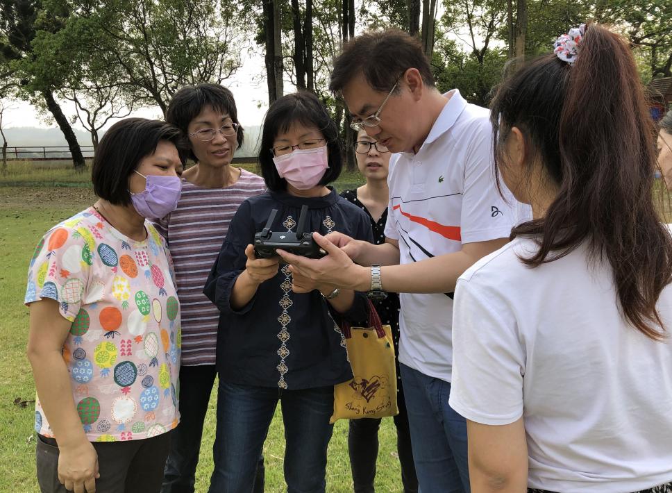學員們認真仔細地聆聽空拍機如何操作