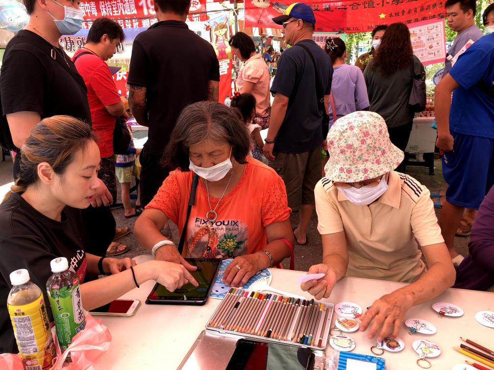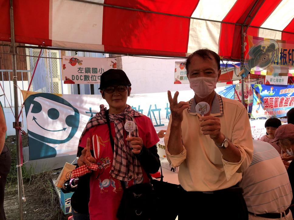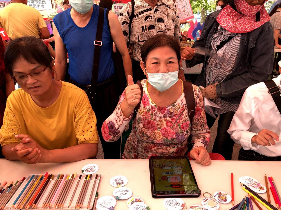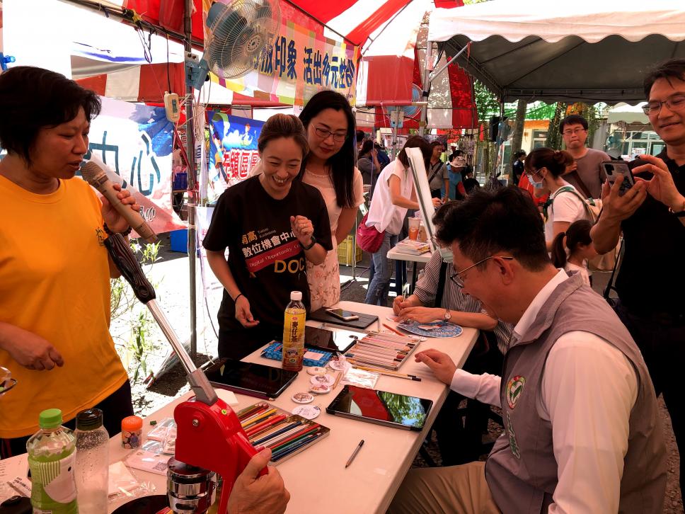 立委蒞臨攤位前開心滑平板