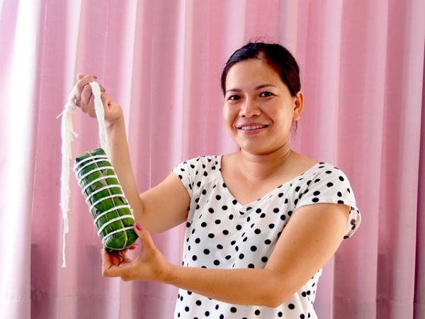 越南新住民新娘阮氏祥青介紹越南粽子製作方法。