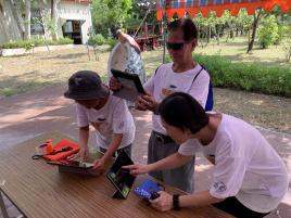 長輩學員也來嘗試伯勞鳥數位拼圖遊戲。