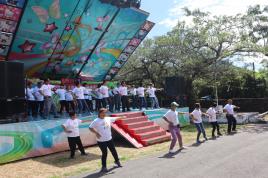 楓港社區長輩活力四色健身操帶動跳。