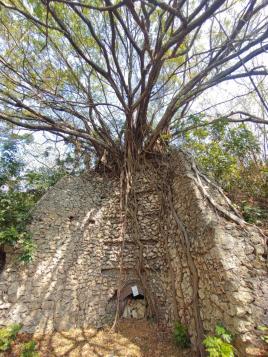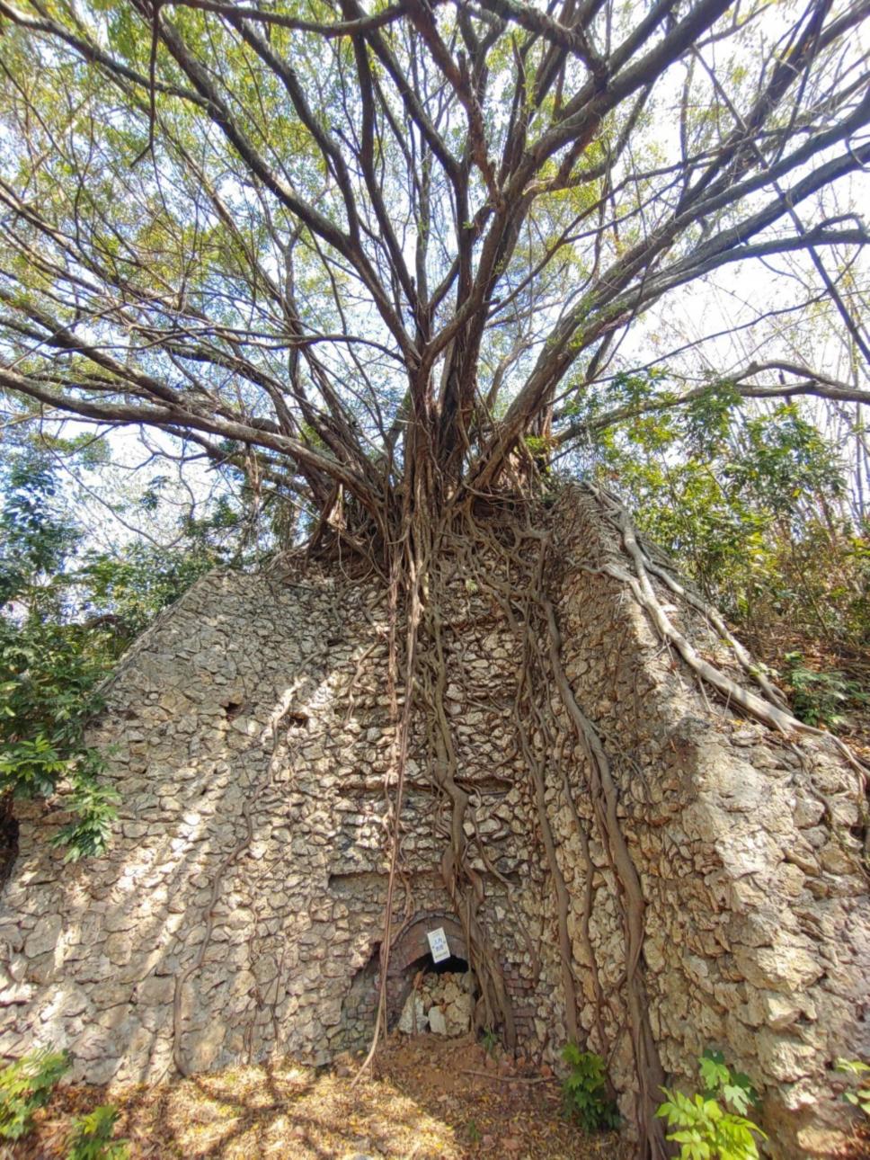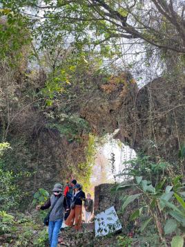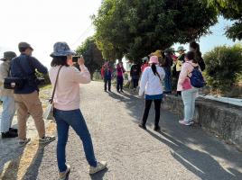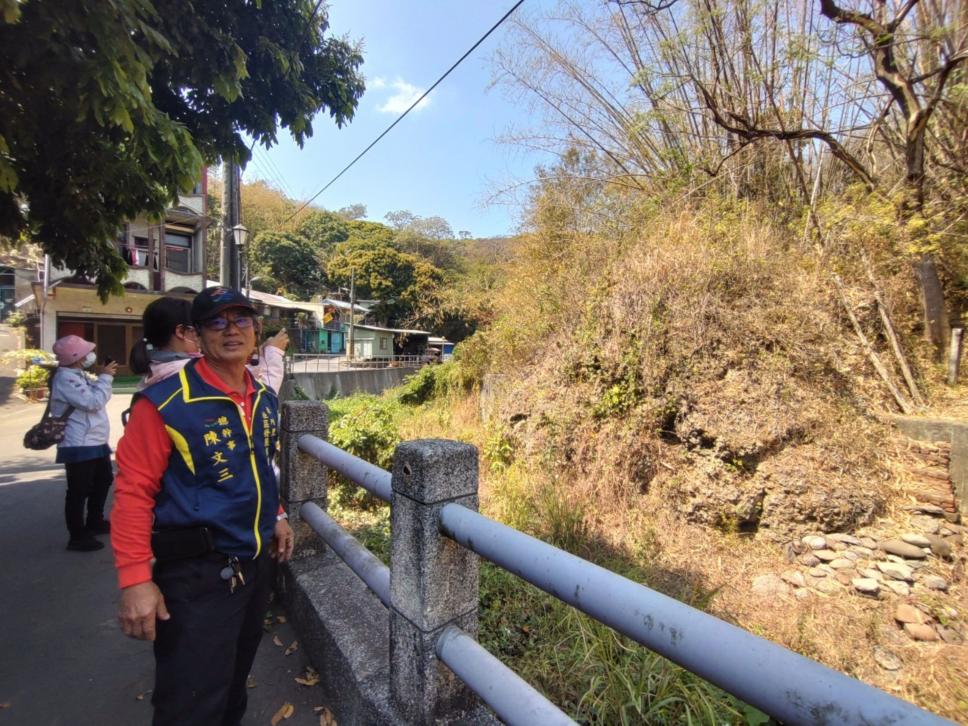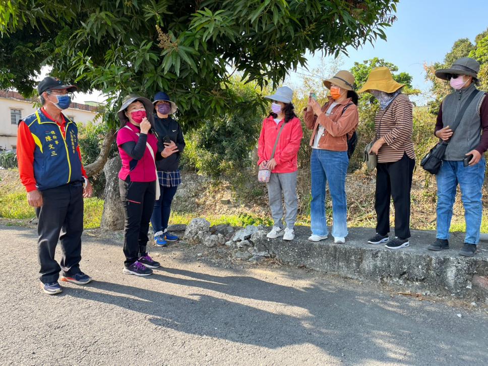 林內社區理事長陳文山(前)介紹獅頭傳說。