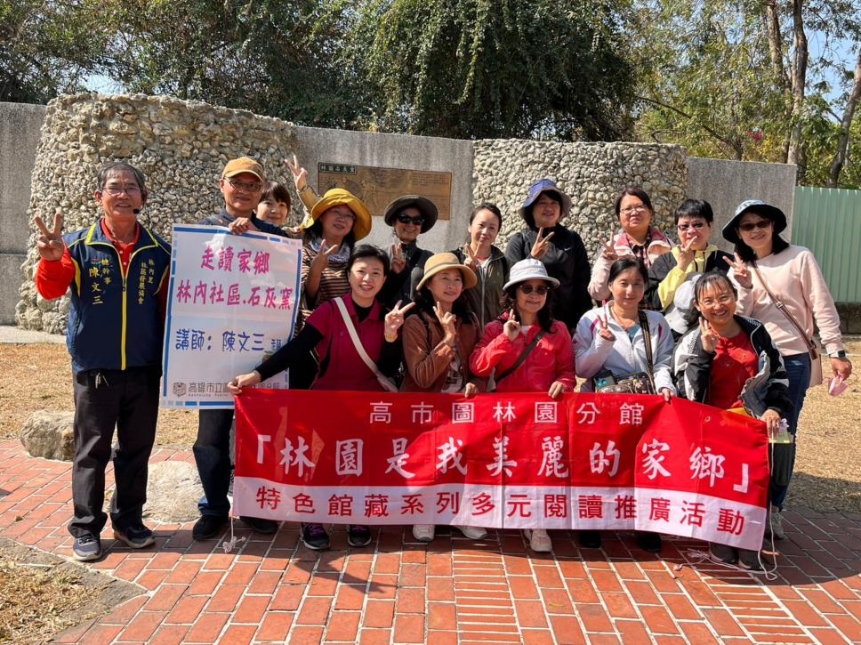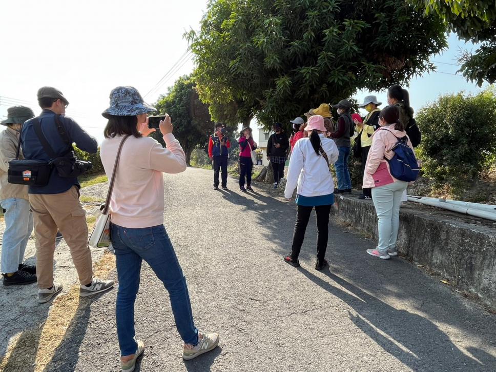 林園圖書館主任李文娟(中右)及林內理事長陳文山(中左)走讀的溫馨行前叮嚀。