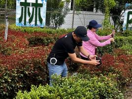 賴政達老師指導學員在林內迷宮公園拍攝取景,及教導如何用技巧拍出影片。