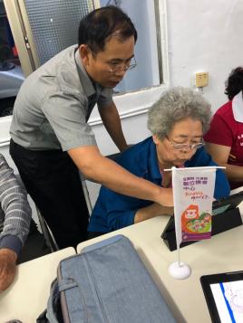 阿嬤很認真的點閱內容