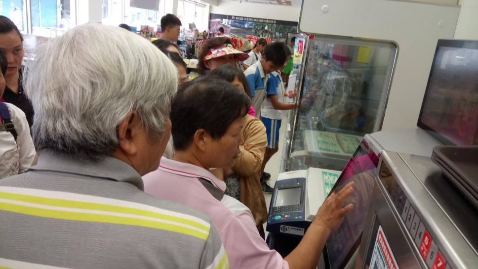 老師帶領學員們到鄰近的便利商店教學操作多功能事務機