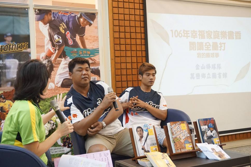下大雨的週末,我們把球場搬到巒圖,不僅閱讀好書,還破天荒在圖書館內打棒球耶(驚呼~~ 感謝來自棒球的故鄉--萬金赤山村【金山棒球隊】潘瑞勳、劉逸民2位陽光帥哥的棒球真人書~~築夢從來就不是容易的事,勇敢揮棒就對了! 謝謝 歐陽慧英 (歐陽小英)老師精彩訪談,也謝謝 潘嘉明理事長推薦優秀的在青年分享〈我的棒球夢〉