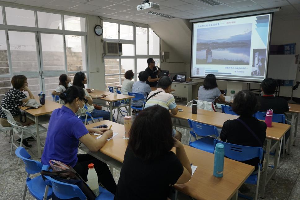 講師講解如何適用手機拍攝基本概念、應用地理環境綜合構圖和運用視覺顏色與線條、採用自然光應用,拍得比較自然以及使用輔助工具,增加畫面的平衡感。