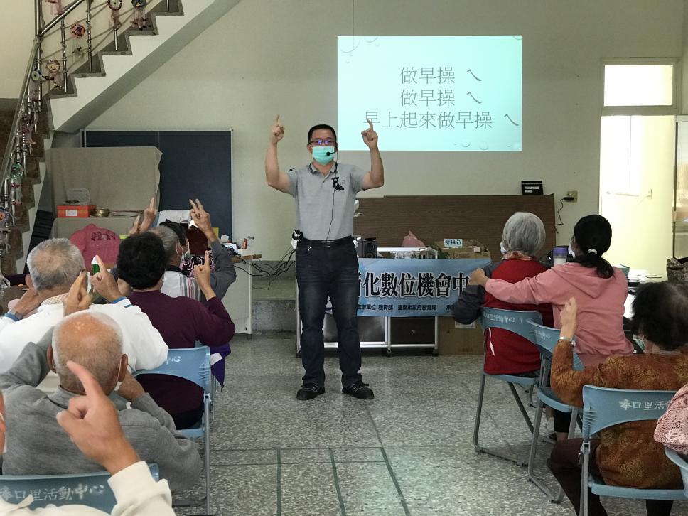 老師教奉口里的阿公.阿嬤一起運動