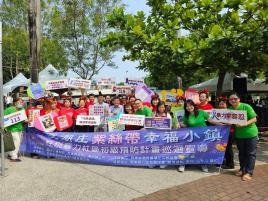 融入衛福部及屏東縣政府性別暴力社區初級預防計畫宣導 (愛潮庄紫絲帶幸福小鎮),周品全鎮長也帶領公所志工一起叁與防暴紫絲帶宣言