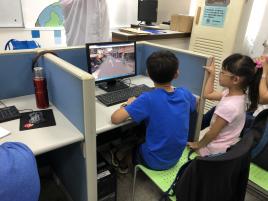 姊弟倆認真地搜尋著自己的家在哪裡?