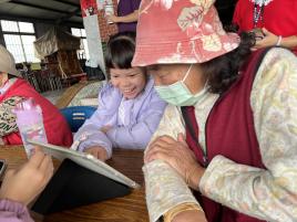 長輩與孩子們攜手學習、彼此交流,小朋友化身小老師幫長輩拍照修圖,長輩看到自己回到18歲的模樣,無不樂開懷