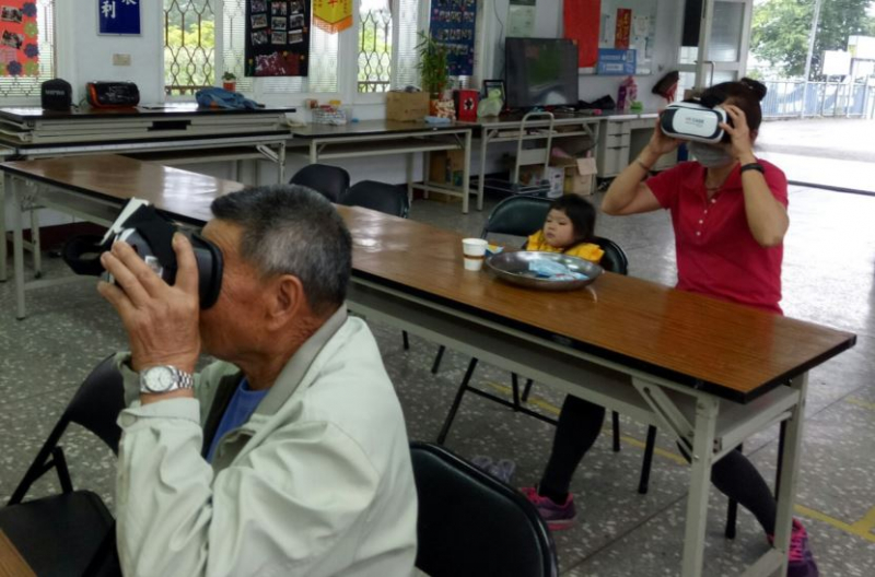 看這裡!要專心聽老師說明VR眼鏡穿戴的方式哦!