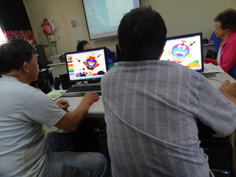 新學員很開心的做自我介紹,有夫妻檔也有隔壁鄉鎮過來的學員。學員從認識電腦的開關機去學習,了解軟體、硬體設備的名稱和功能。