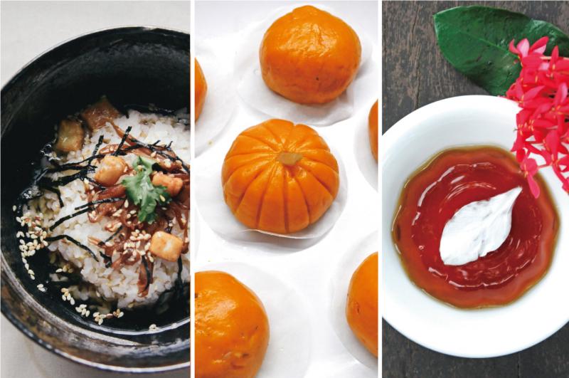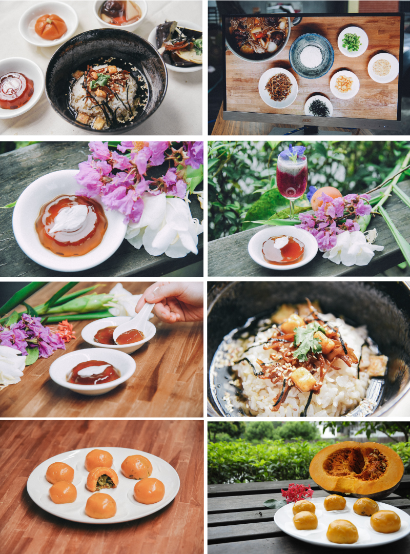 培仁老師與 DOC 挑出精選菜單:沙坑紅寶茶泡飯、沙坑紅寶滷味、沙坑紅寶茶凍與南瓜包。以純淨的「沙坑紅寶」茶菁為基底的餐點,結合客家風味食材,堅持只用最天然的方式調味,絕不使用人工再製品,親手製作的料理,天然安全又飽含心意,透著淡雅的清香,色香味俱全的美,讓身心靈享受五感的饗宴。
