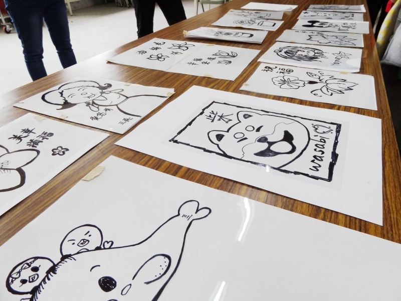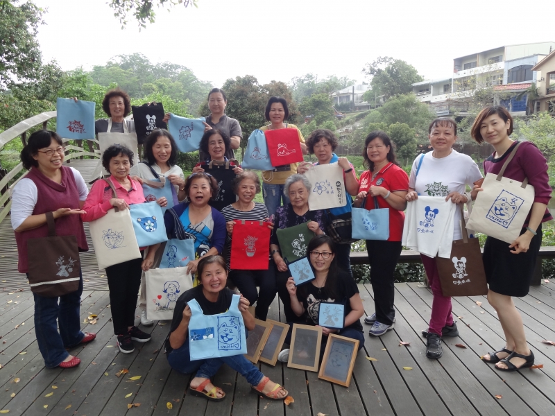 老師在課程上指導學員從網路搜尋喜歡的圖案,激發靈感,設計屬於自己的設計圖稿,有學員從手機下載孫子的塗鴉,有的畫的是自己的愛犬,更有學員用自己的自畫像做為絹印圖案。