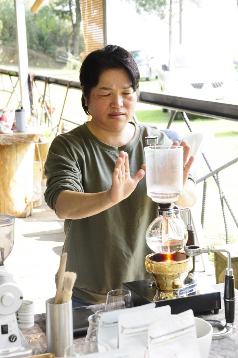 第一次手炒咖啡充滿新奇,等待豆子終於放涼之後,迫不及待立刻現磨,老師在這堂課教導學員使用虹吸壺來沖煮,虹吸壺並不單單是利用沖泡的方式引出咖啡香,經由熱脹冷縮的壓力萃取,使得咖啡更加濃郁厚重。手沖咖啡層次、風味千變萬化,能將豆子特有的果酸、堅果香氣經由手沖完整呈現,但對於害怕咖啡酸味的人來說,虹吸沖煮的醇厚醞味更是首選。