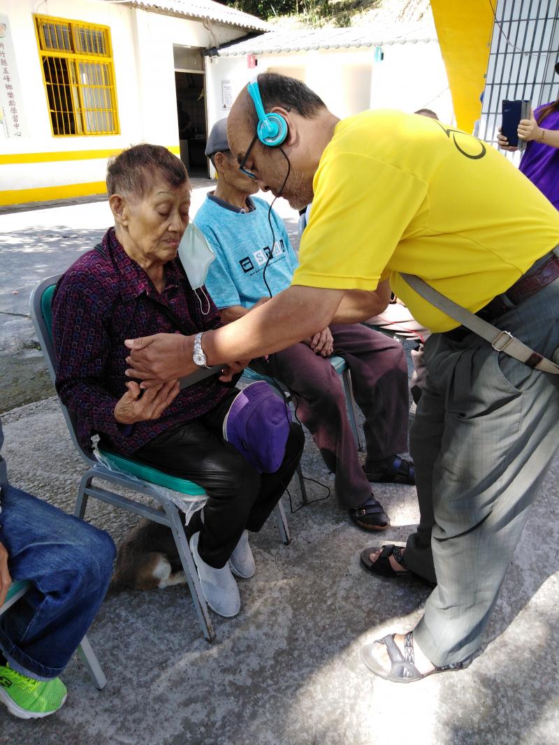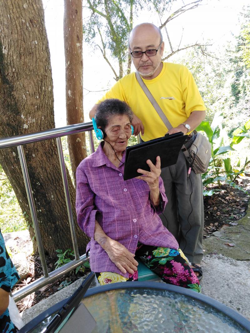 至桃山村健康文化站教導老人家如何使用平板與耳機使用