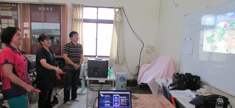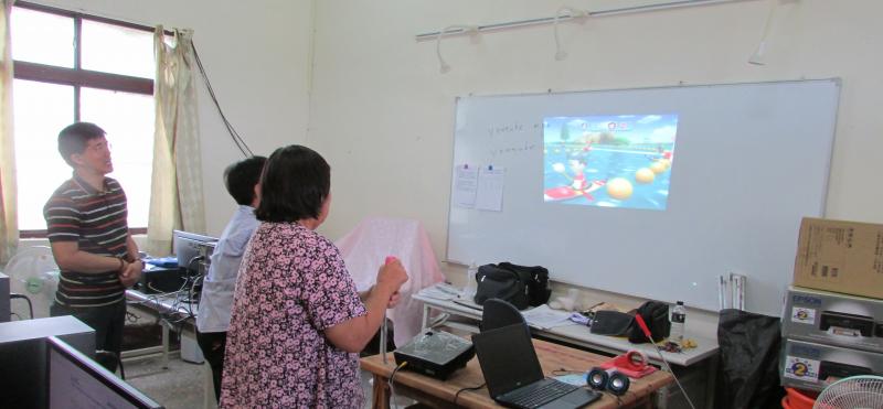 施老師幫害羞的奶奶拍照,逗笑了奶奶們。
