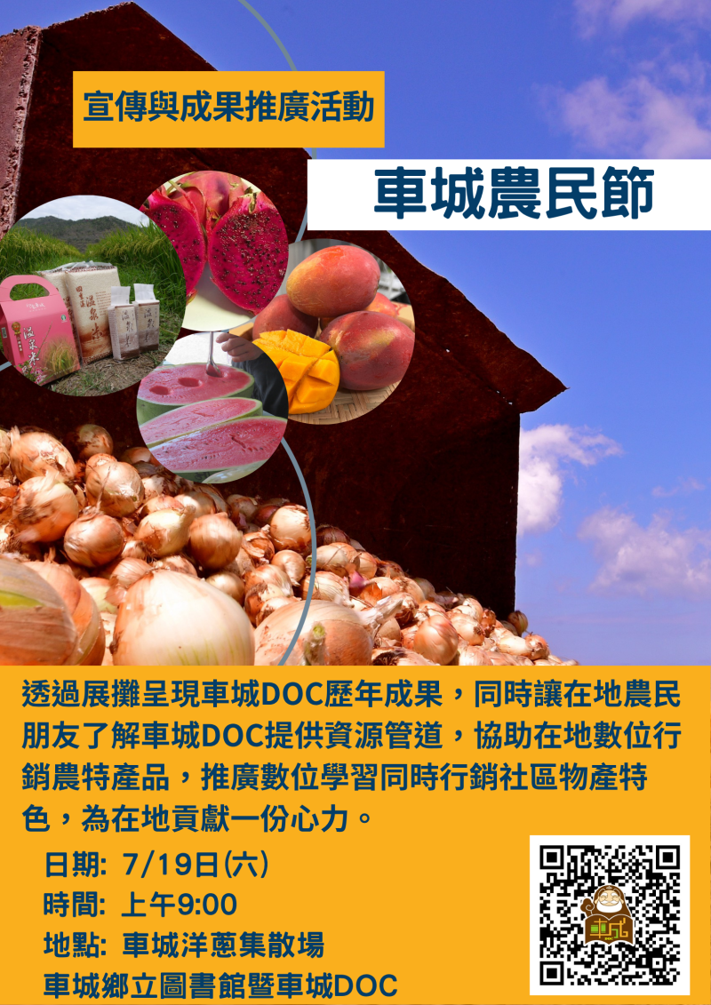 車城數位機會中心(以下簡稱車城DOC)致力於推動車城地區特色產業發展行銷,它透過教育和培訓,幫助農民學習數位技能,並利用DOC提供的軟硬體設備,開拓新的銷售渠道...(詳細內容)