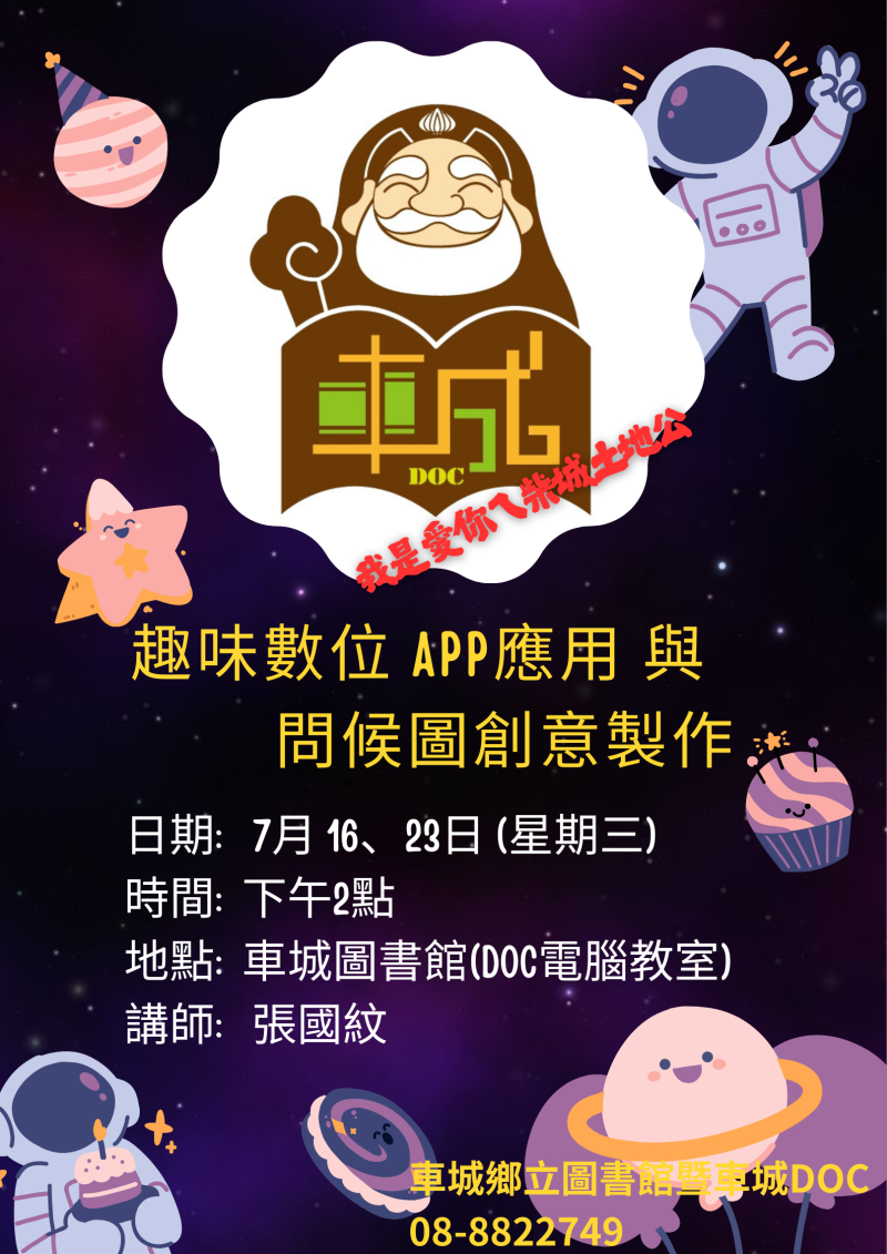 車城圖書館暨車城DOC又來到社區,將帶領大家繼續來玩平板、玩數位,相信又是一次快樂的學習。...(詳細內容)