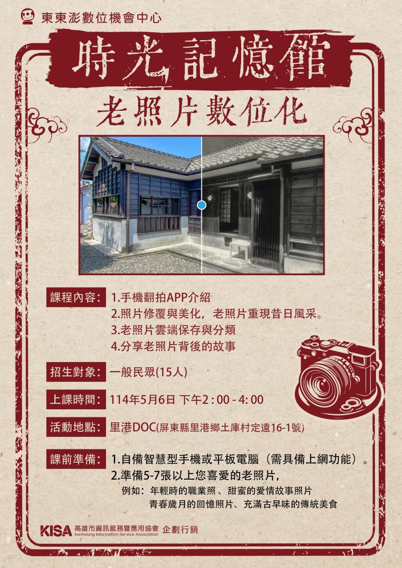 你是不是也有這些煩惱? ❓ 手機明明在手,卻總是不知道怎麼用? ❓ 想查健保、用Line、看政府網站,卻找不到方法? 不用怕! 現場有小幫手,手把手教你各種實用...(詳細內容)